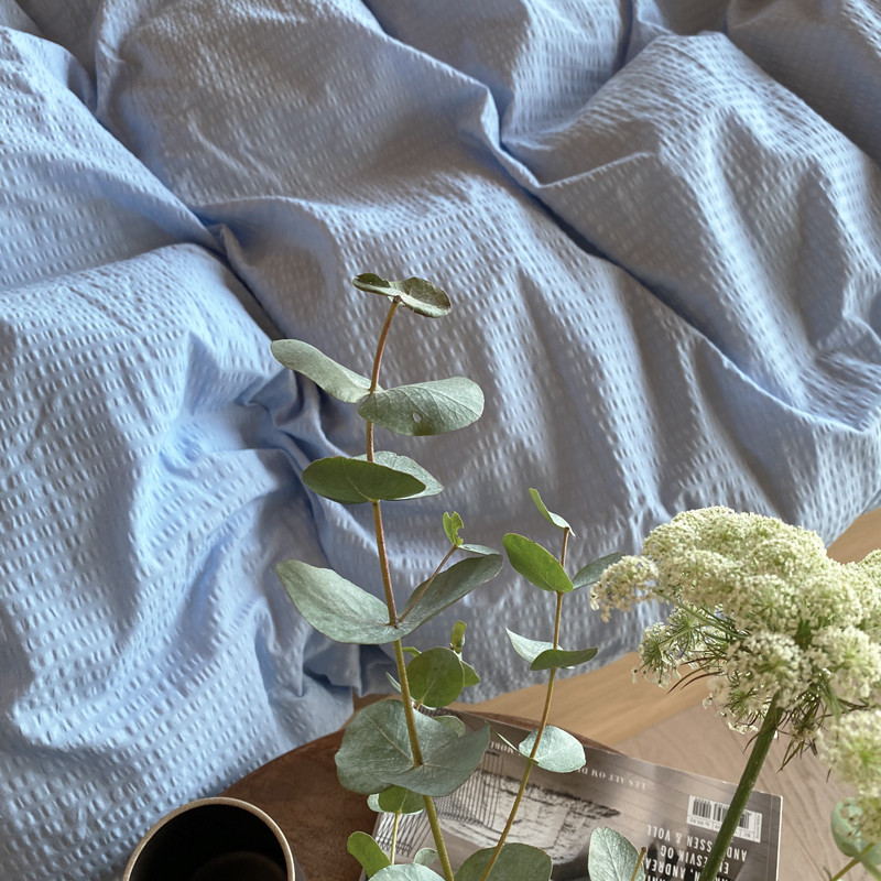 Bjerregaard Krepp er fremstilt av 100% ren bomull, og har en spesiell struktur i stoffet som skaper et stillestående luftlag som gir en deilig og sval komfort. Sengesettet er perfekt for varme sommernetter, men virker samtidig lunt og behagelig mot kroppen om vinteren. Krepp er et lett, luftig og svært lettstelt sengetøy. Kreppeffekten blir forsterket etter vask og og strukturen i stoffet gjør stryking og rulling overflødig. Det er bare å vaske, tørke og legge på, gang etter gang.