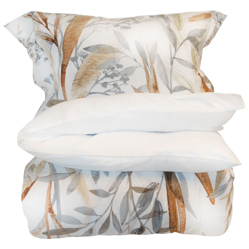 "Sonate" bomullssateng er fremstilt av 100% ren bomull. Vi har benyttet en høykvalitetsbomull med lengre fibre, i kombinasjon med en veveteknikk som gir sengetøyet en ekstra glatt og fin overflate. Sengetøyet er silkemykt og innbydende, med en delikat handfeel og en glans som speiler lyset i rommet på en nydelig måte. Bomull har temperaturregulerende egenskaper, som gjør at stoffet virker svalt mot kroppen om sommeren, og luner når kulden setter inn. Et perfekt sengetøy man kan ha glede av hele året, med sin fantastiske draperingsevne og sine stemningsfulle print.