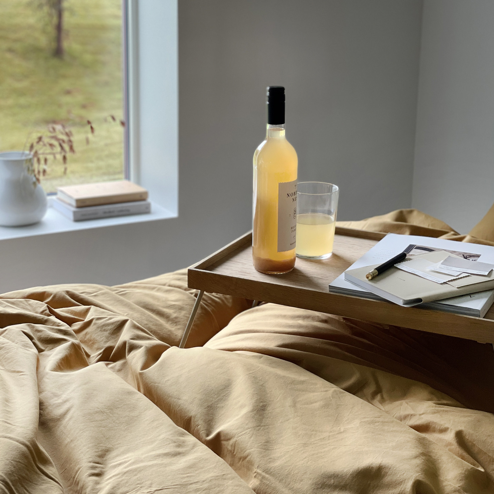 Sengesettene kommer i en harmonisk og dus fargepalett, og har en avslappet look. Fintrådet garn