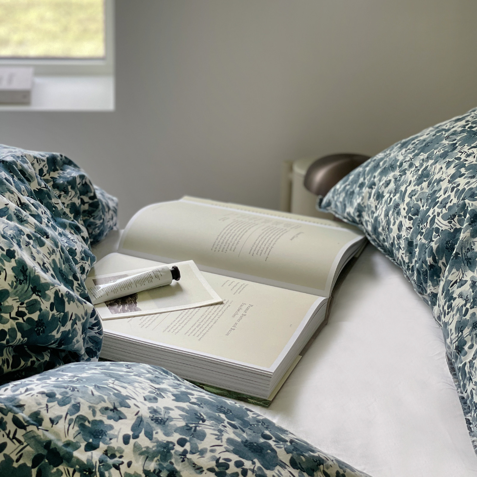 Sengesettene kommer i en harmonisk og dus fargepalett, og har en avslappet look. Fintrådet garn