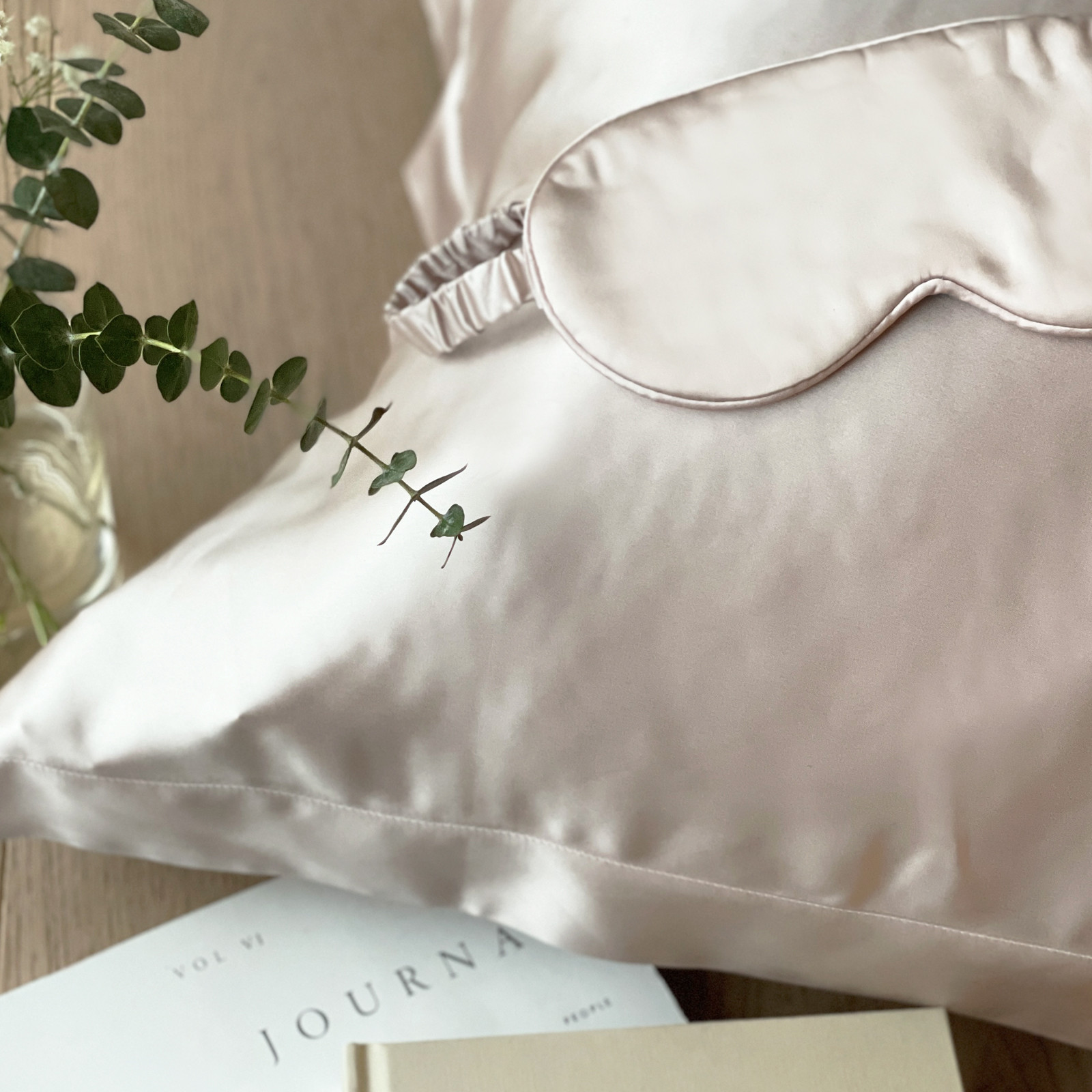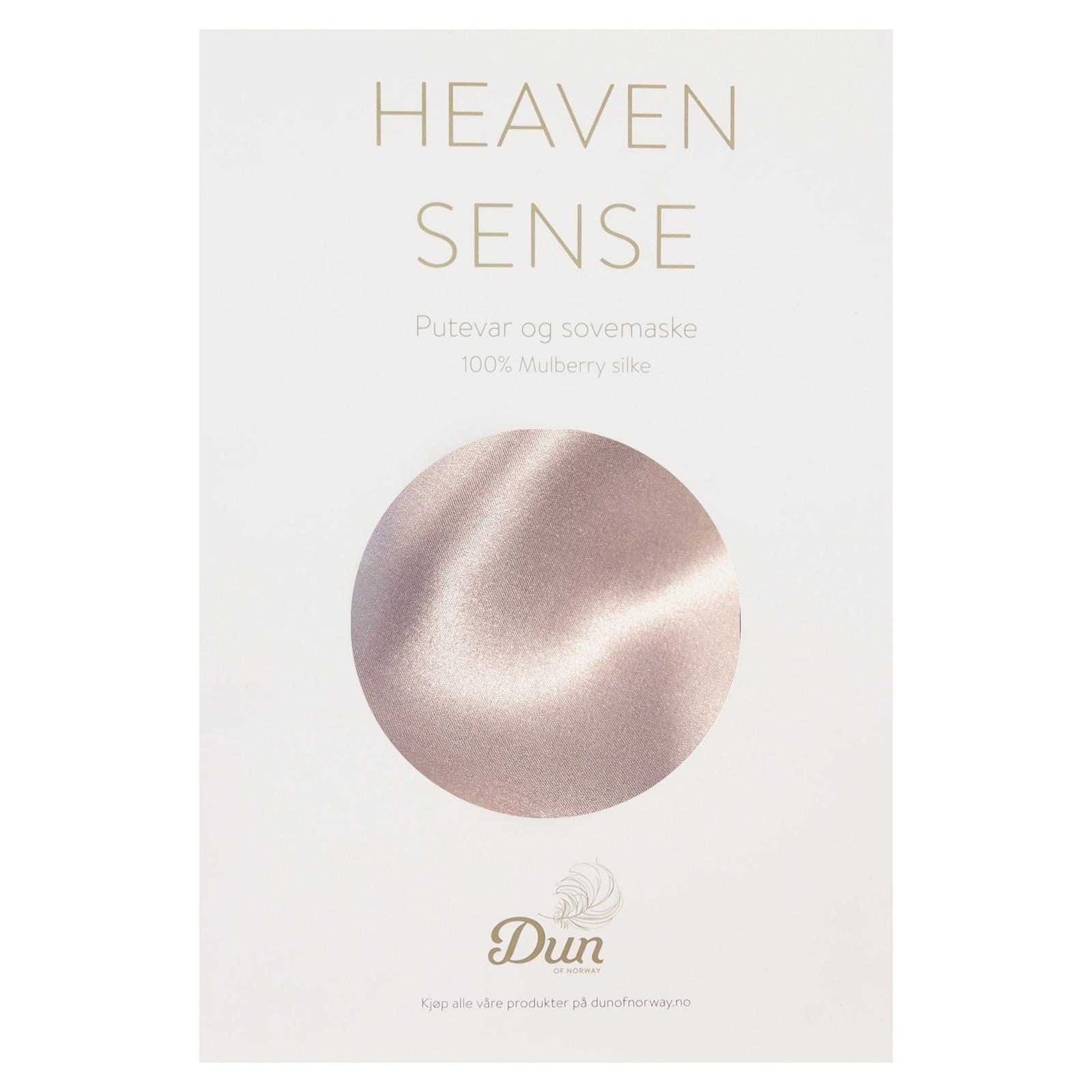 Heaven Sense putetrekk og sovemaske, i 100% mulberry silke. Forsinker aldringsprosessen og virker forebygger mot rynker.