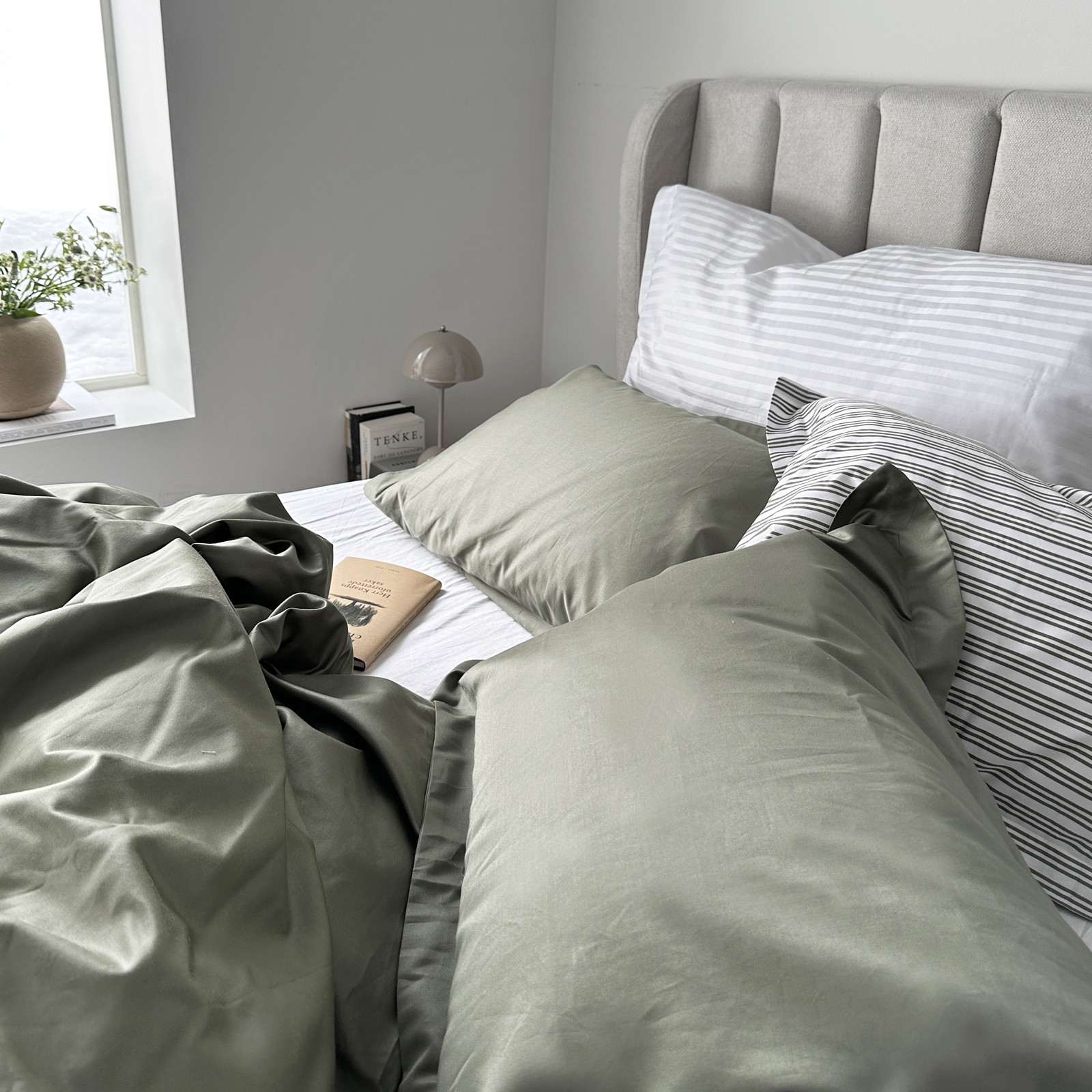 Kolleksjonen er laget for både moderne og tradisjonelle smaker, og passer lett inn på et hvert soverom. Sengetøyet er et ensfarget og plaint vev, med enkle sømmer, og en trådtetthet på hele 700.