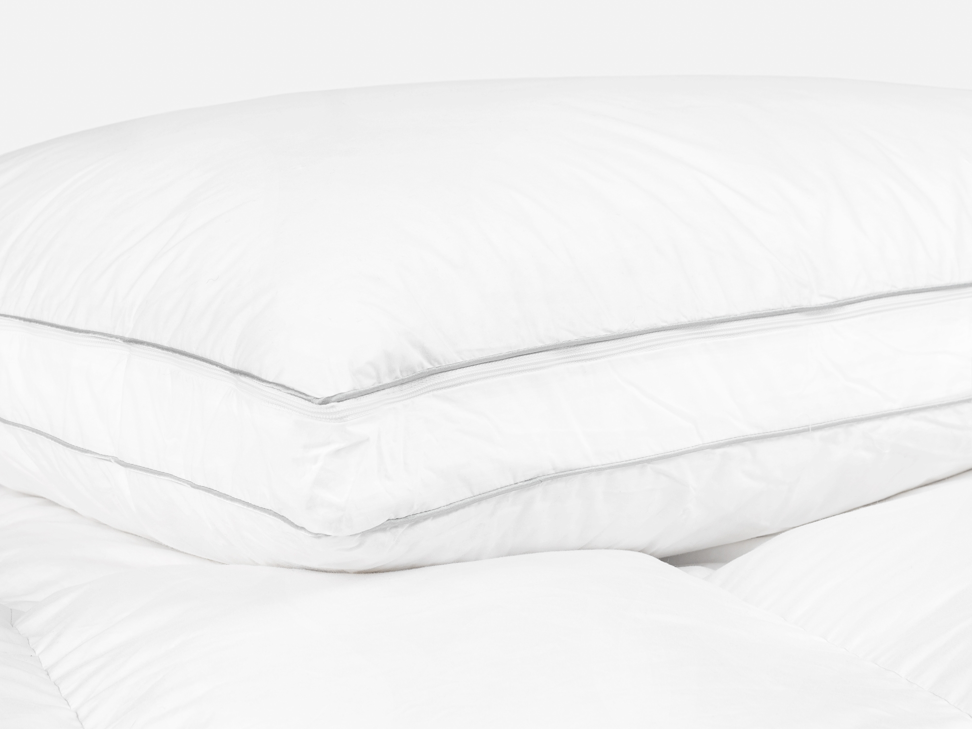 Lett og bløt dunpute, med 2 ileggsputer i fiber, for regulering av høyde.