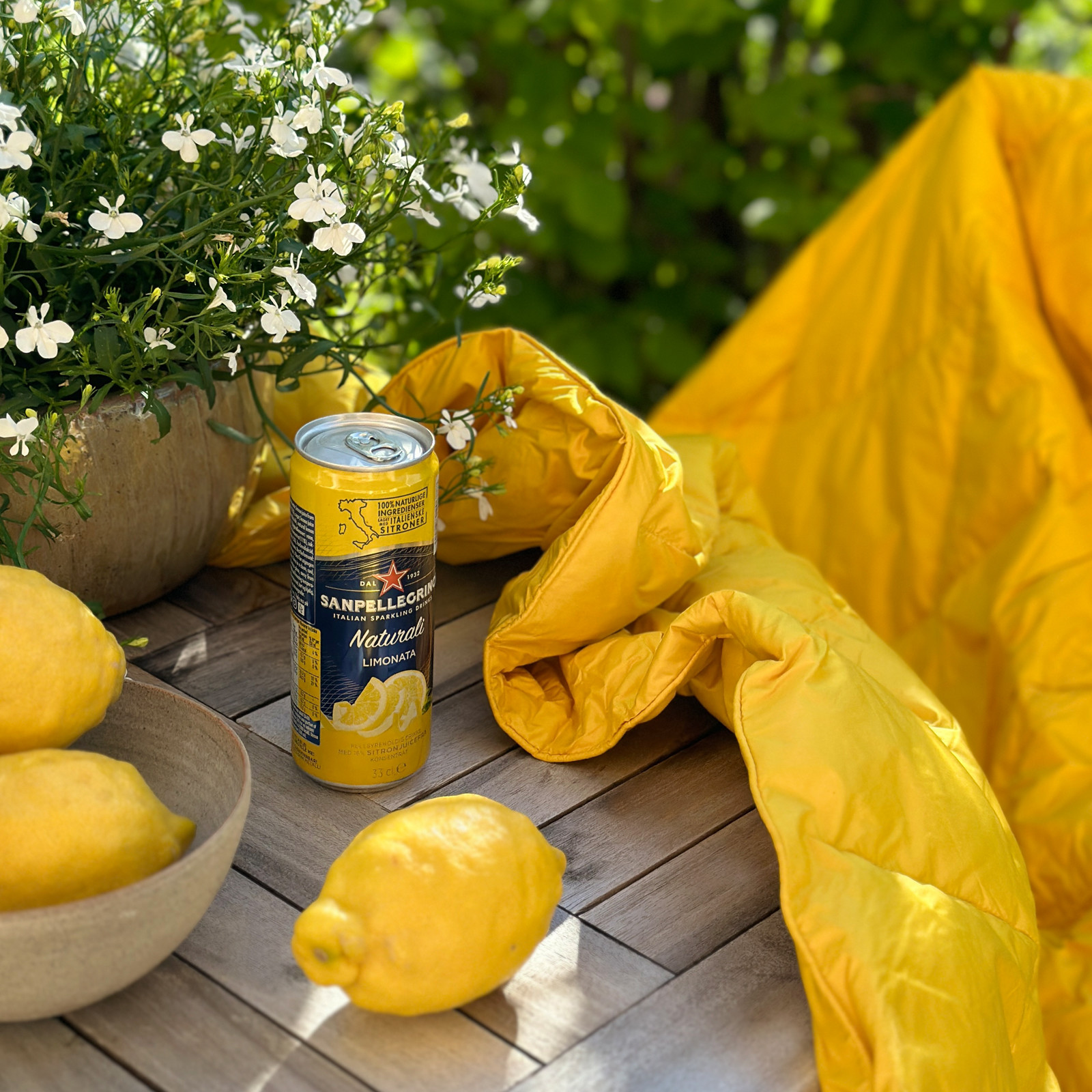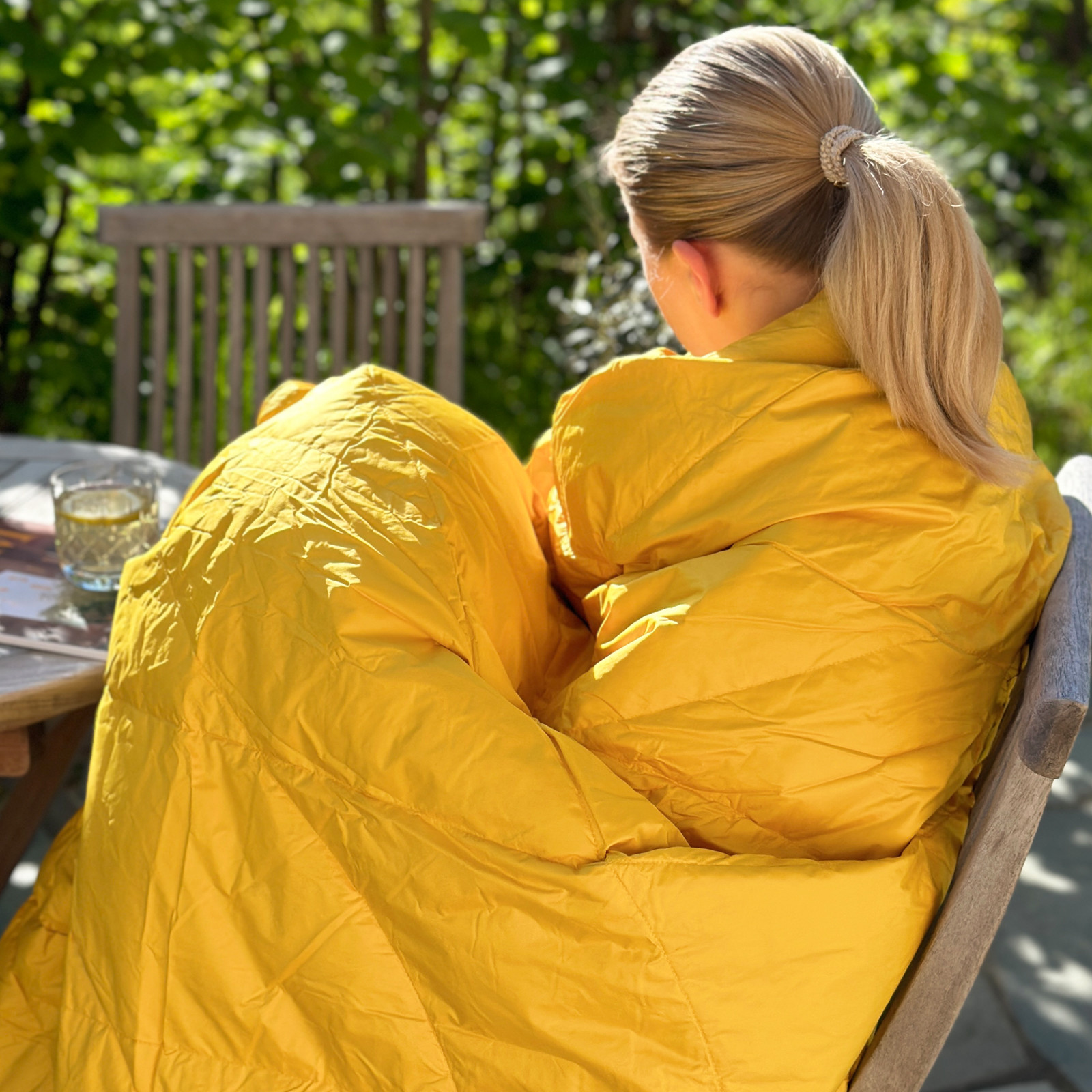 Dunpleddet er i en klassisk og tidløs gul farge!