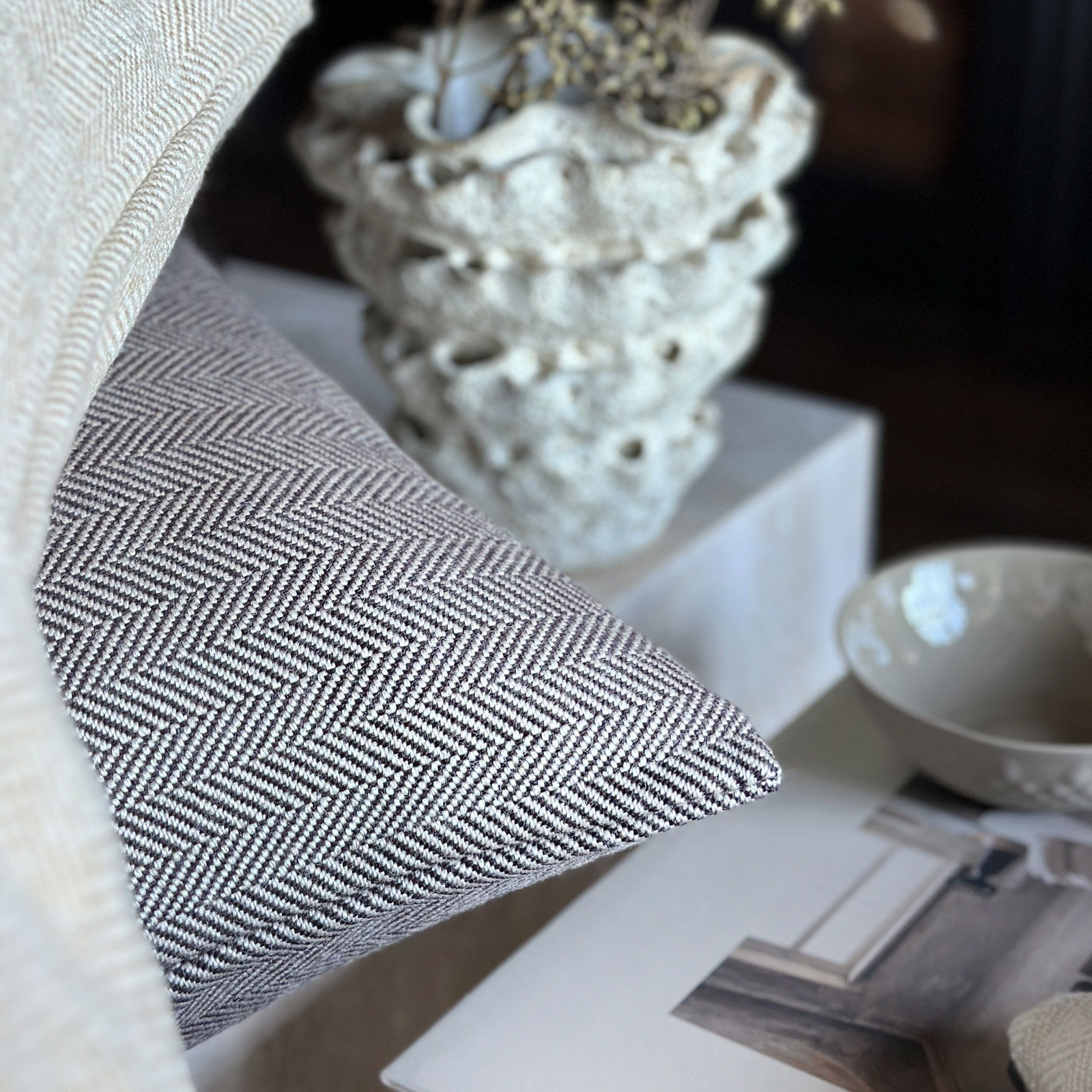 Sofistikert og tidløs pyntepute i 100% myk kvalitetsull. Stoffet har et klassisk fiskebenmønster og tilfører ethvert rom en eksklusiv og lun følelse. Enten du ønsker å friske opp i huset, hytta eller utemiljøet, vil denne puten være et langvarig og allsidig tillegg til hjemmet ditt.