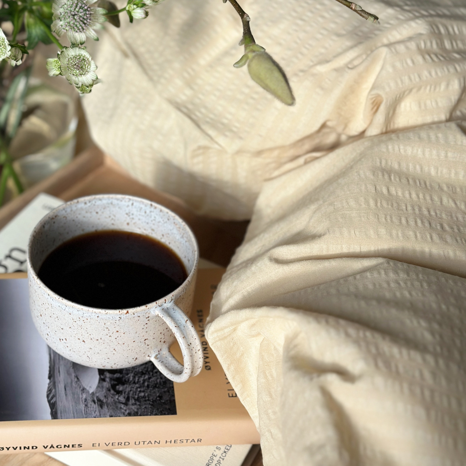 Bjerregaard Krepp har et rent og tidløst design. Dette sengesettet har en dus kremgul farge.