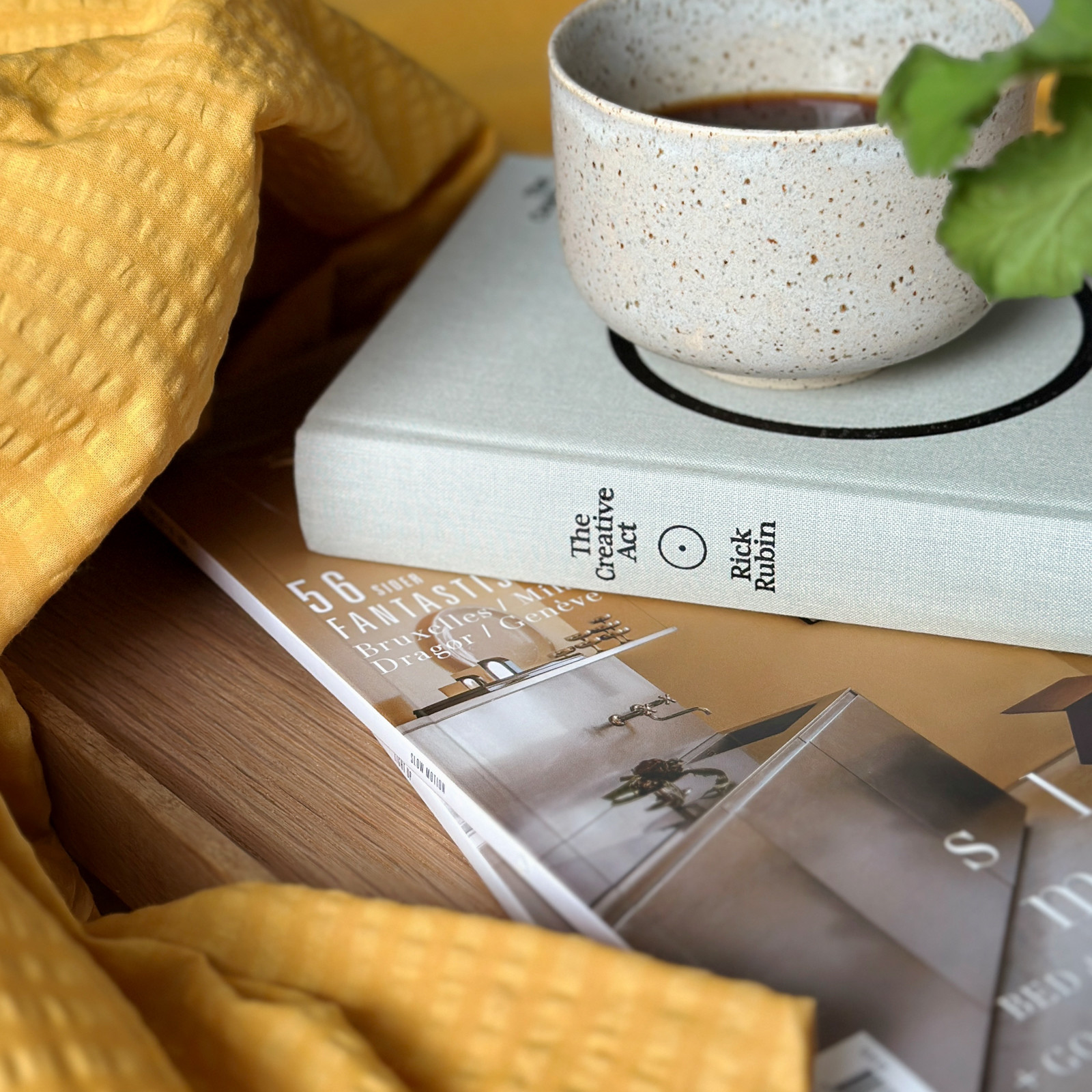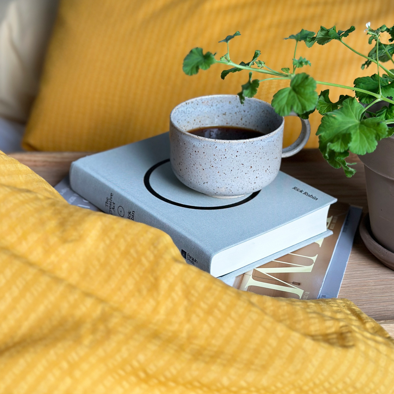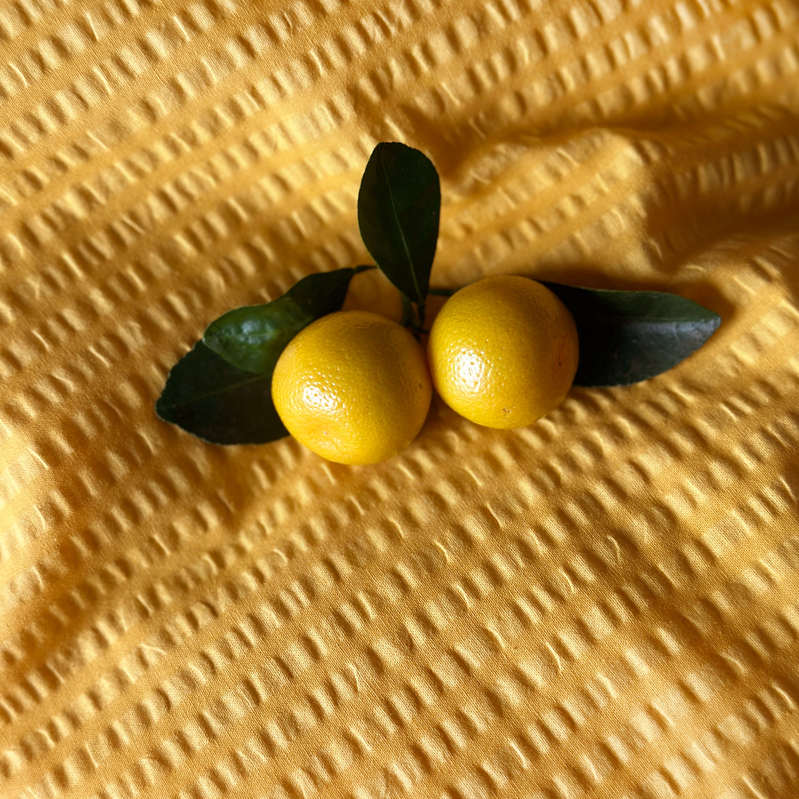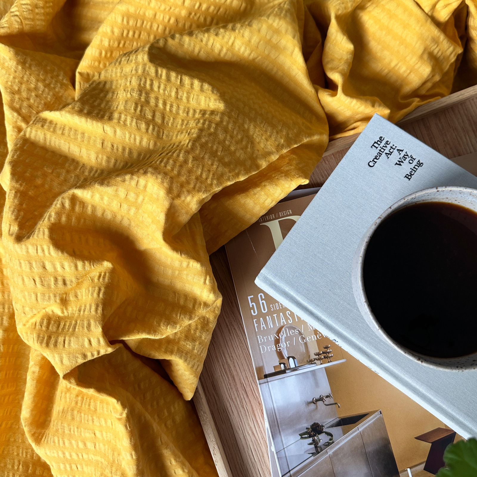 Bjerregaard Krepp har et rent og tidløst design. Dette sengesettet har dyp gul farge.