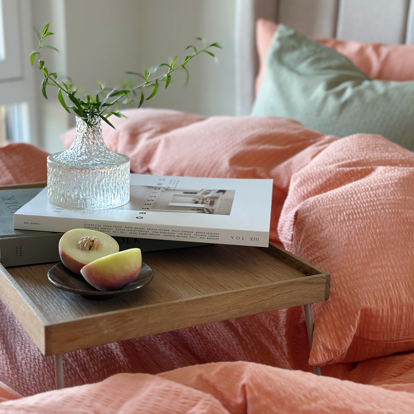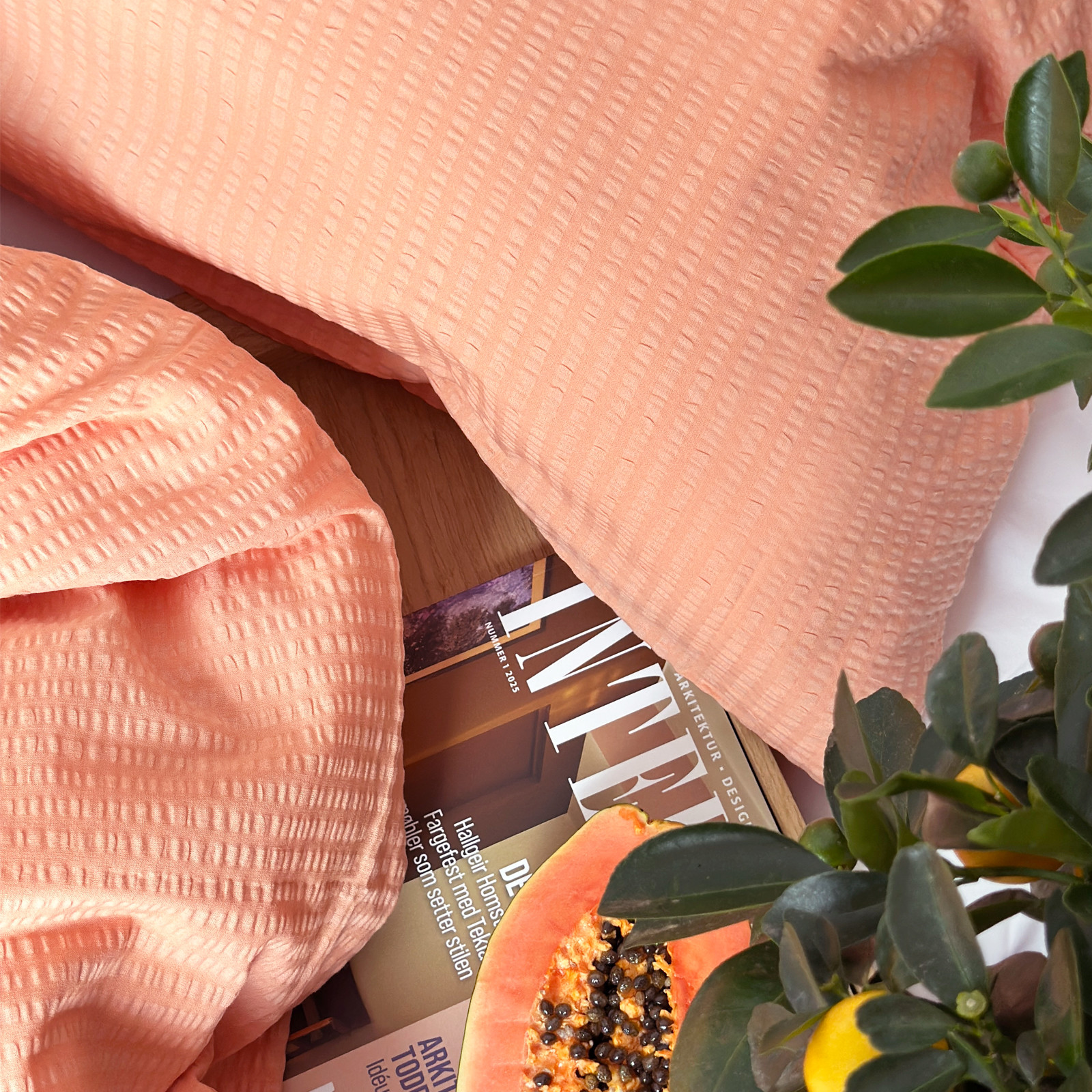 Bjerregaard Krepp har et rent og tidløst design. Dette sengesettet har en nydelig og frisk fersken farge.